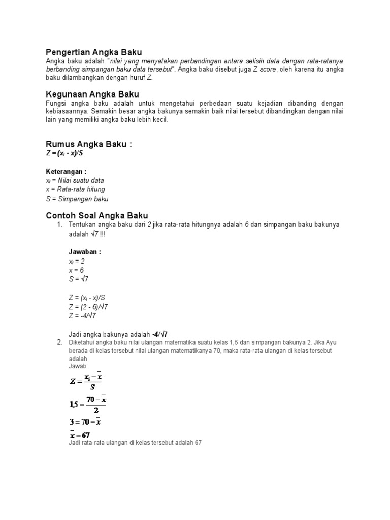 Contoh Soal Angka Baku Beserta Jawabannya. Contoh soal angka baku dalam kehidupan sehari hari beserta jawabannya. Sep 02 2020 Contoh Soal Simpangan Baku.