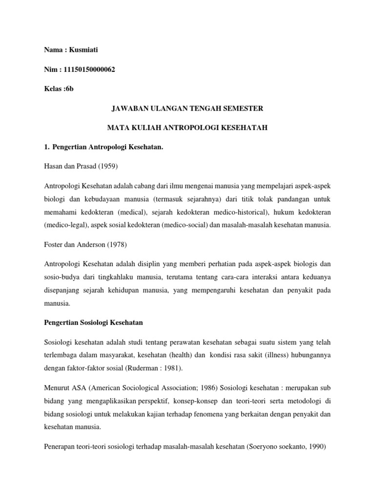 Contoh Soal Antropologi Kesehatan Dan Jawabannya Mathlaul Khairiyah