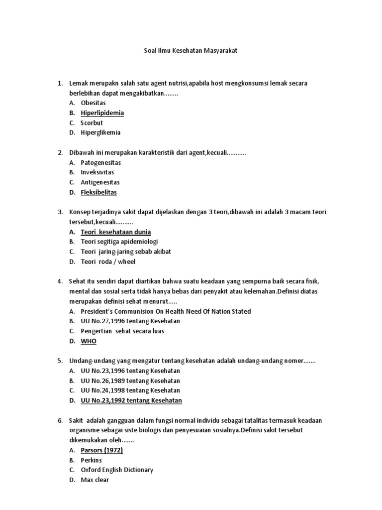 Soal Dan Jawaban Ilmu Kesehatan Masyarakat Soal Dan Jawaban